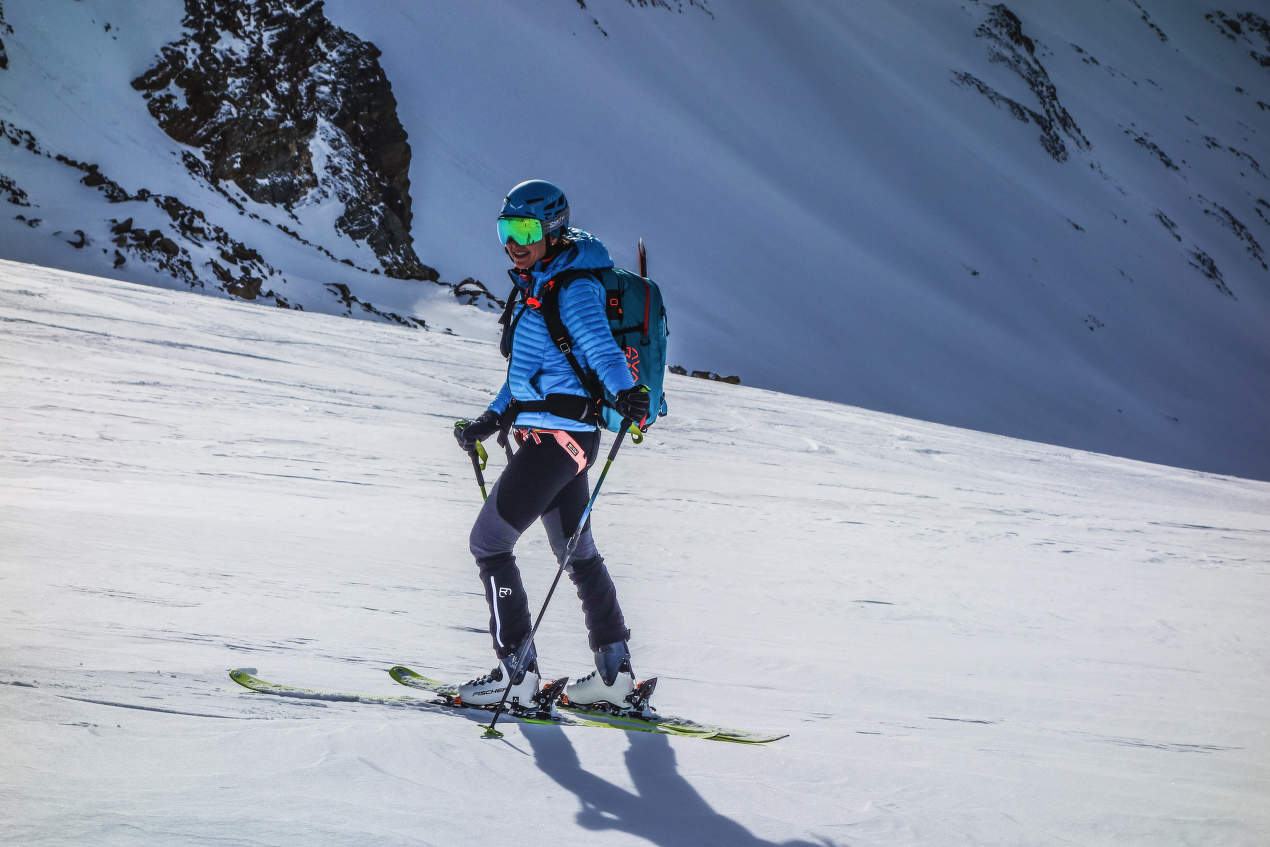 Acum vine partea principală! Coborârea de la Wildspitze la Taschachtal atinge proporții impresionante pe care, în mod normal, le găsești doar pe patru mii de metri în Alpi: țineți-vă bine, vă așteaptă aproximativ 1.900 de metri verticali de coborâre și aproximativ 13 kilometri de mers neîntrerupt până la mașinile de la stația inferioară de telecabină! Și mai ales pe corpul magnificului ghețar Taschachferner. Dar acest lucru implică și anumite riscuri: aveți nevoie de o vizibilitate bună pe coborâre, trebuie să fiți atenți la eventualele fisuri și zone de crevase și să vă opriți cât mai puțin posibil și, dacă este cazul, la intervale de timp. În plus, aveți grijă că această coborâre este posibilă doar atunci când ghețarul și valea inferioară sunt suficient de acoperite de zăpadă. Acest lucru se întâmplă, de obicei, din a doua jumătate a lunii ianuarie. În caz contrar, nu este nicio problemă să vă întoarceți în stațiunea de schi.
