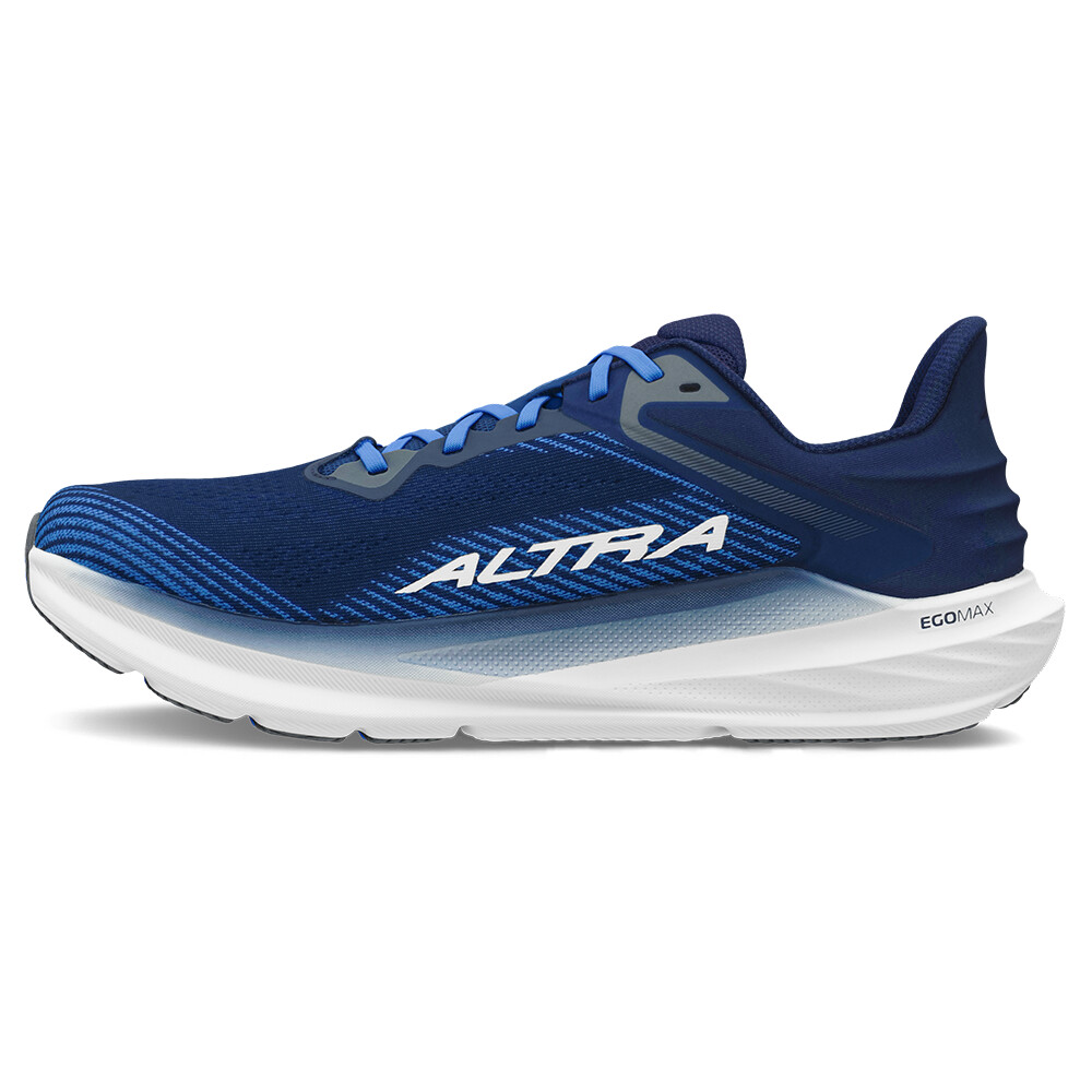 Pantofi de trail pentru bărbați cu fețe moi premium și tălpi intermediare Altra EGO™ MAX ranforsate, care pot face față unei utilizări cu adevărat intense. Cu o potrivire ergonomică și zero drop, vă vor ajuta să vă îmbunătățiți tehnica de alergare, reducând în același timp riscul de la efort prelungit.