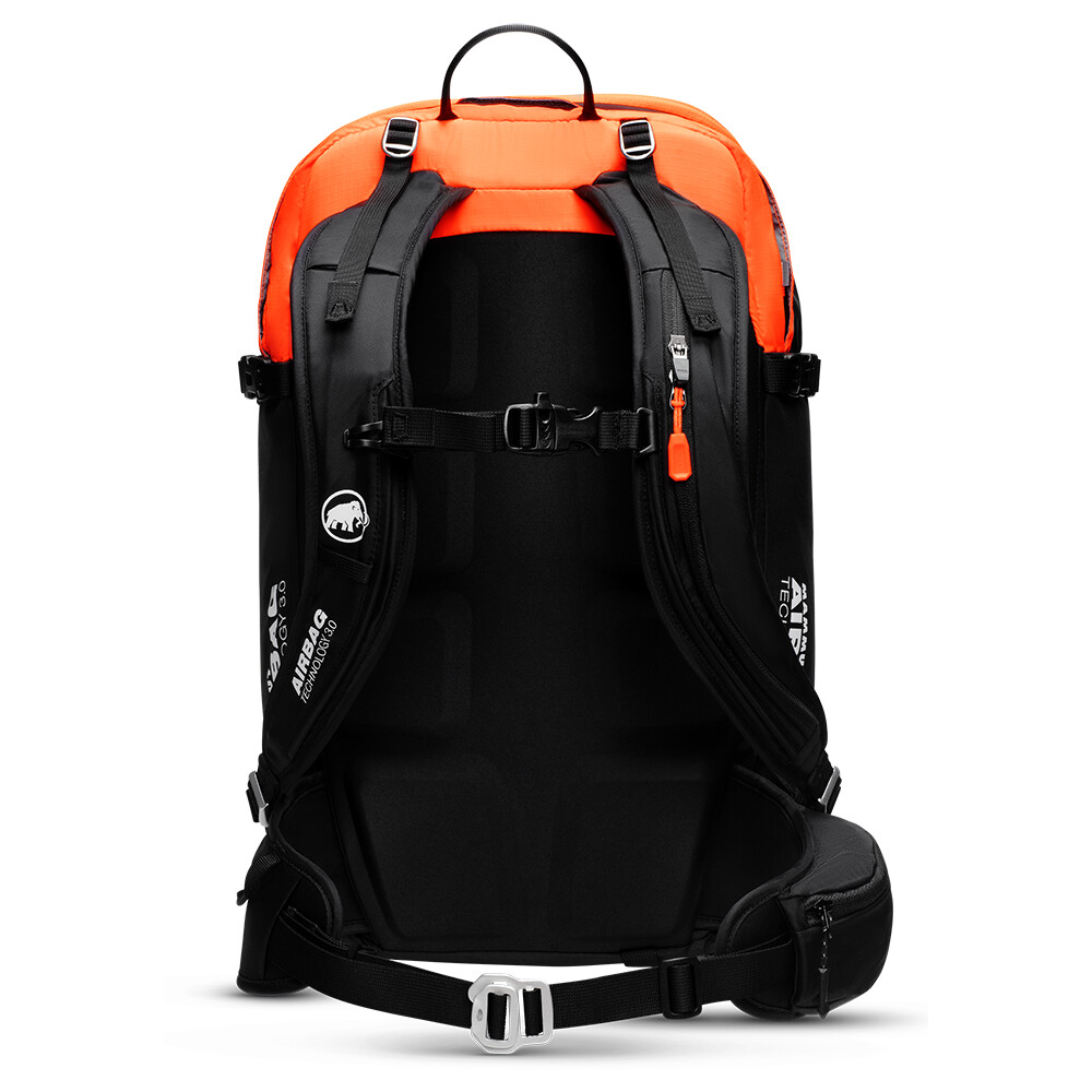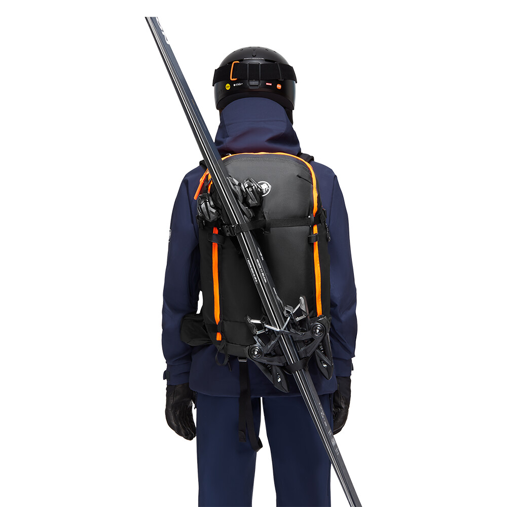 Rucsac de avalanșă cu airbag. Este ușor și are un sistem de spate confortabil din spumă EVA termoformată. Posibilitatea de a atașa schiuri, snowboard, cască, piolet și alte echipamente. Elemente portocalii pentru o vizibilitate mai bună.