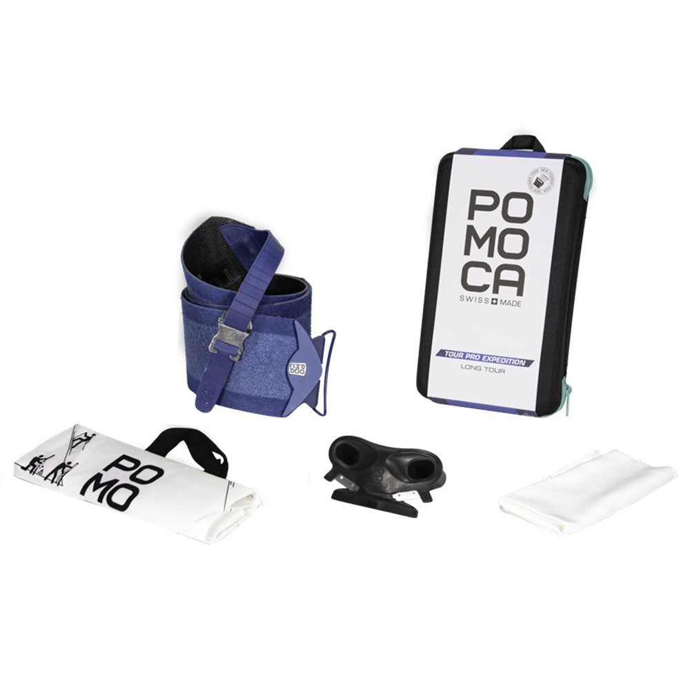 Tip universal de centuri de alpinism skialp Pomoca. Modelul Tour Pro are o grămadă cu o valoare de aderență mai mare, astfel încât se ține bine chiar și pe urcările lungi și abrupte din munții mari.