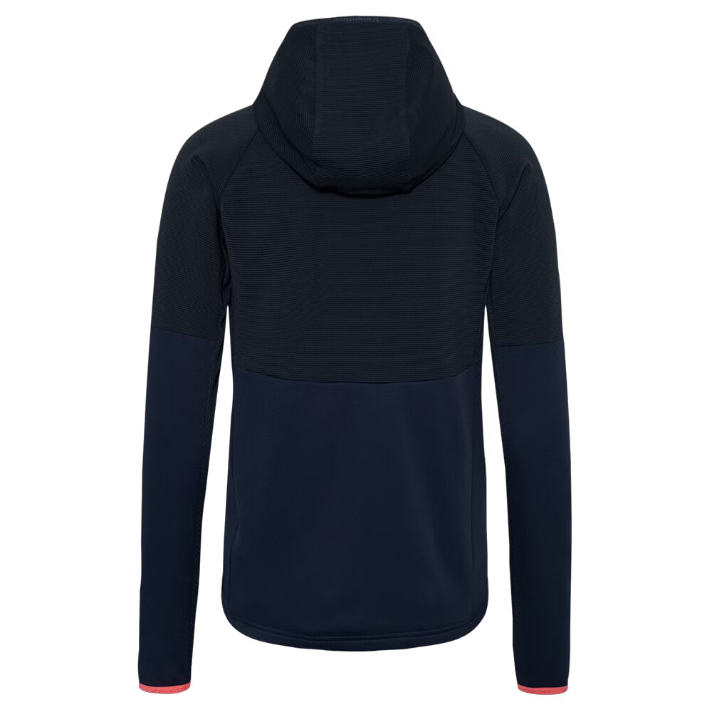 Hanoracul este fabricat din material sintetic care îndepărtează umezeala de pe corp și se usucă rapid. Hanoracul are detalii din plasă respirabilă. Gluga se potrivește perfect datorită tivului elastic din jur. Există panouri din material elastic în zonele accentuate, iar două buzunare cu fermoar păstrează elementele esențiale în siguranță.