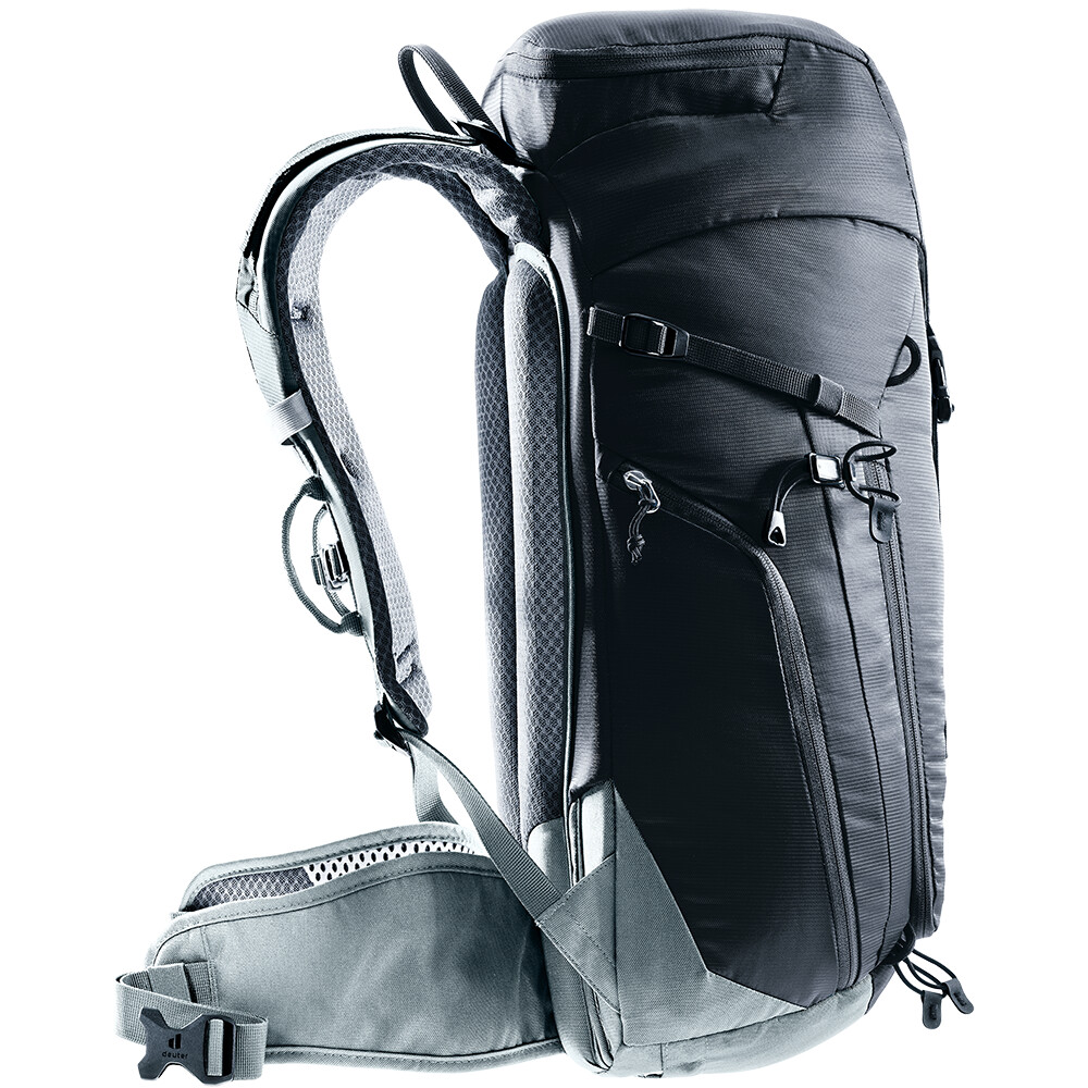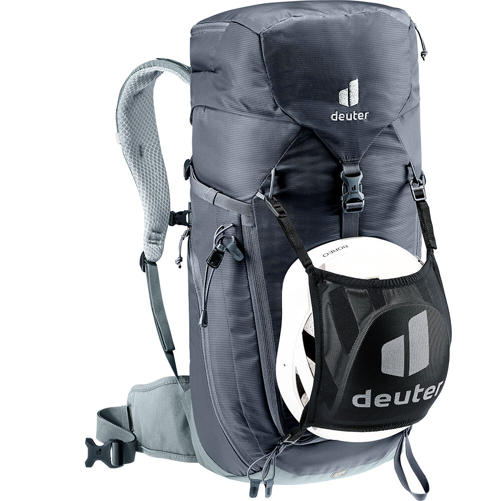 Pentru fanii înrăiți ai sporturilor montane și ai via ferrata, rucsacul Trail 24 de la deuter nu dezamăgește niciodată. Este sofisticat în fiecare detaliu, se potrivește perfect corpului, dar permite o circulație perfectă a aerului, astfel încât spatele tău să rămână uscat. De asemenea, echipamentul dvs. de munte va fi perfect îngrijit, datorită ajutoarelor practice de pe rucsac. Vă puteți atașa casca la suport cu ajutorul buclelor, iar toporul și bețele de trekking la mânere. Iar când aveți nevoie de ea, puteți glisa cureaua de șold în orificiul de pe spate.