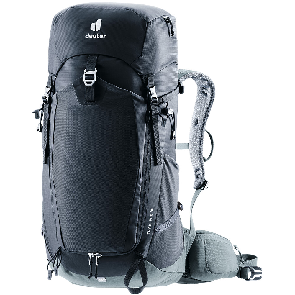 Compartimentul principal al Trail Pro 36 conține tot ce aveți nevoie pentru o zi sau două în munți. Acesta este accesibil de sus, de sub capac, cu buzunare interne și externe, dar și din față, datorită unei deschideri largi cu fermoar care accelerează accesul la conținut. În interiorul compartimentului principal există un buzunar pentru hidrovac. rucsacul are, de asemenea, un buzunar lateral din plasă, de exemplu pentru o sticlă de apă sau mănuși. Pe cealaltă parte este un buzunar cu fermoar care stochează în siguranță obiecte mici sau electronice, de exemplu. În partea din față a rucsacului este un buzunar mare extensibil care poate ține confortabil o jachetă sau un impermeabil. Din partea de sus, veți găsi un buzunar mic care stochează în siguranță articolele dvs. mici. rucsacul Trail Pro 36 are, de asemenea, șnururi pentru atașarea bastoanelor de trekking sau a unui piolet, bucle pentru un suport pentru cască, curele de compresie, dacă aveți nevoie de ele, și bucle inteligente pe curelele de umăr în care să vă prindeți carabinierele ferrata de mână.