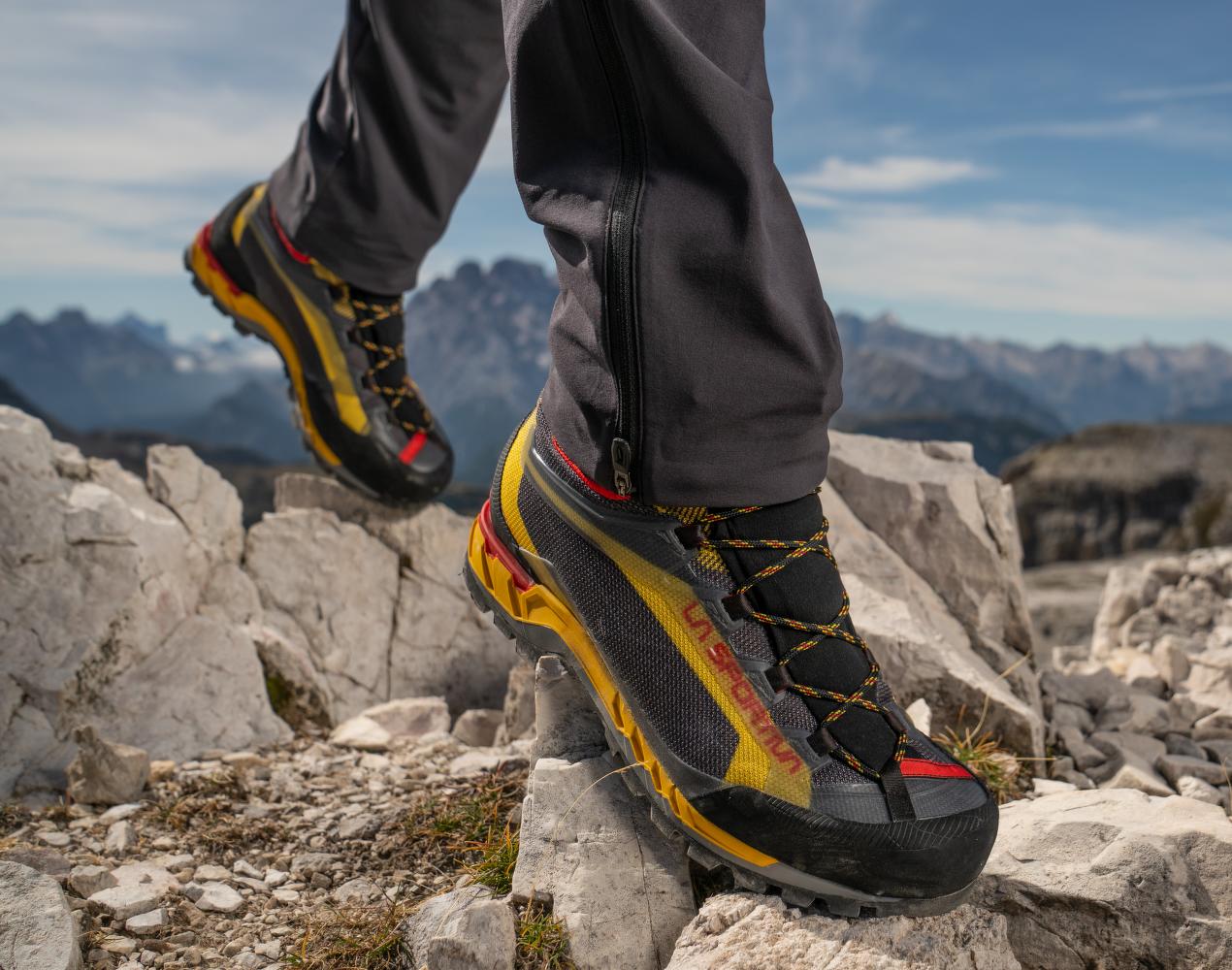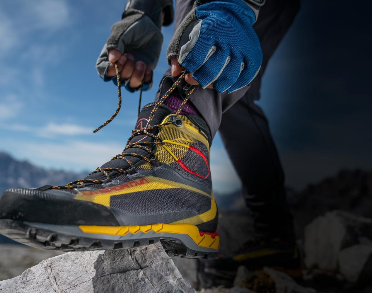 Ghete alpine ușoare de la La Sportiva cu membrană GORE-TEX® pentru a vă proteja picioarele de umezeală.