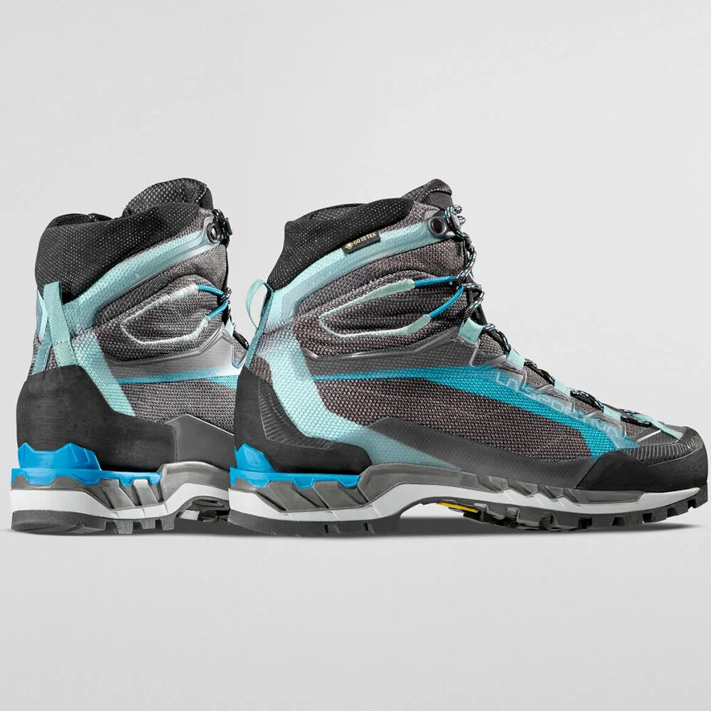 Trango Tech Women GTX de la La Sportiva vă vor ghida pașii atunci când traversați secțiuni stâncoase (Via Ferrata) și mergeți pe ghețari. Partea superioară a acestora este fabricată dintr-o țesătură extrem de durabilă cu un strat termoplastic special, care este completată în zonele expuse (vârf, călcâi) de o ghipsă din cauciuc care protejează pantofii împotriva săpăturilor.Talpa amortizată Vibram cu un model grosier aderă perfect la suprafață, făcând în același timp călcatul mai confortabil. Căptușeala cu membrană GORE-TEX® asigură apoi că picioarele tale rămân întotdeauna frumoase și uscate.