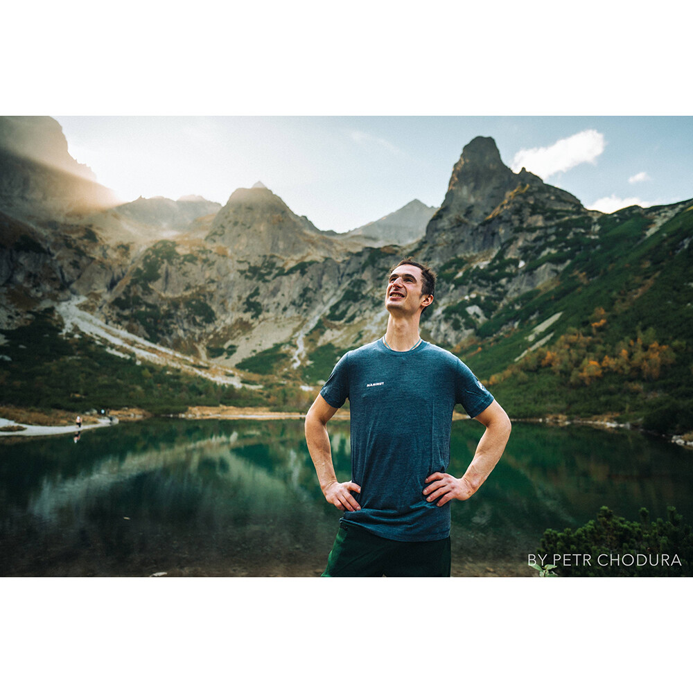 Tricou outdoor pentru bărbați Tree Wool FL T-Shirt de la compania elvețiană Mammut, fabricat din materiale naturale.