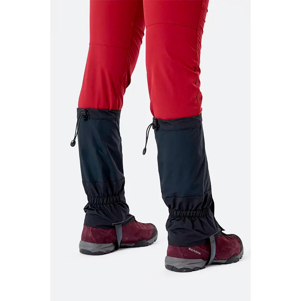 Acoperă pentru drumeții de iarnă și drumeții de mai multe zile în locuri cu vreme ploioasă. Protejează pantalonii și cizmele de umiditate și murdărie. Fixare cu velcro în față, cordon, cârlig pentru fixarea pe cizmă.
