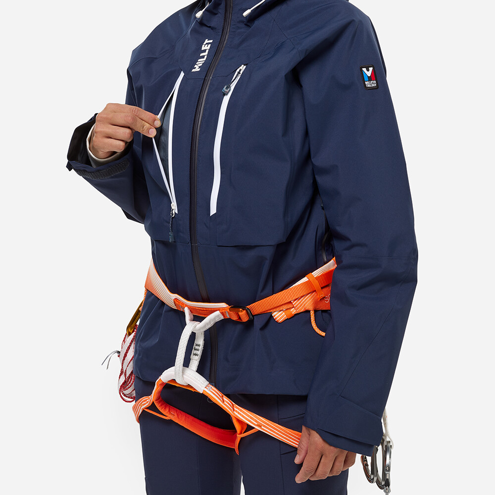 Jacheta alpină pentru femei TRILOGY ICON GORE-TEX PRO de la Millet oferă protecție superioară împotriva intemperiilor.