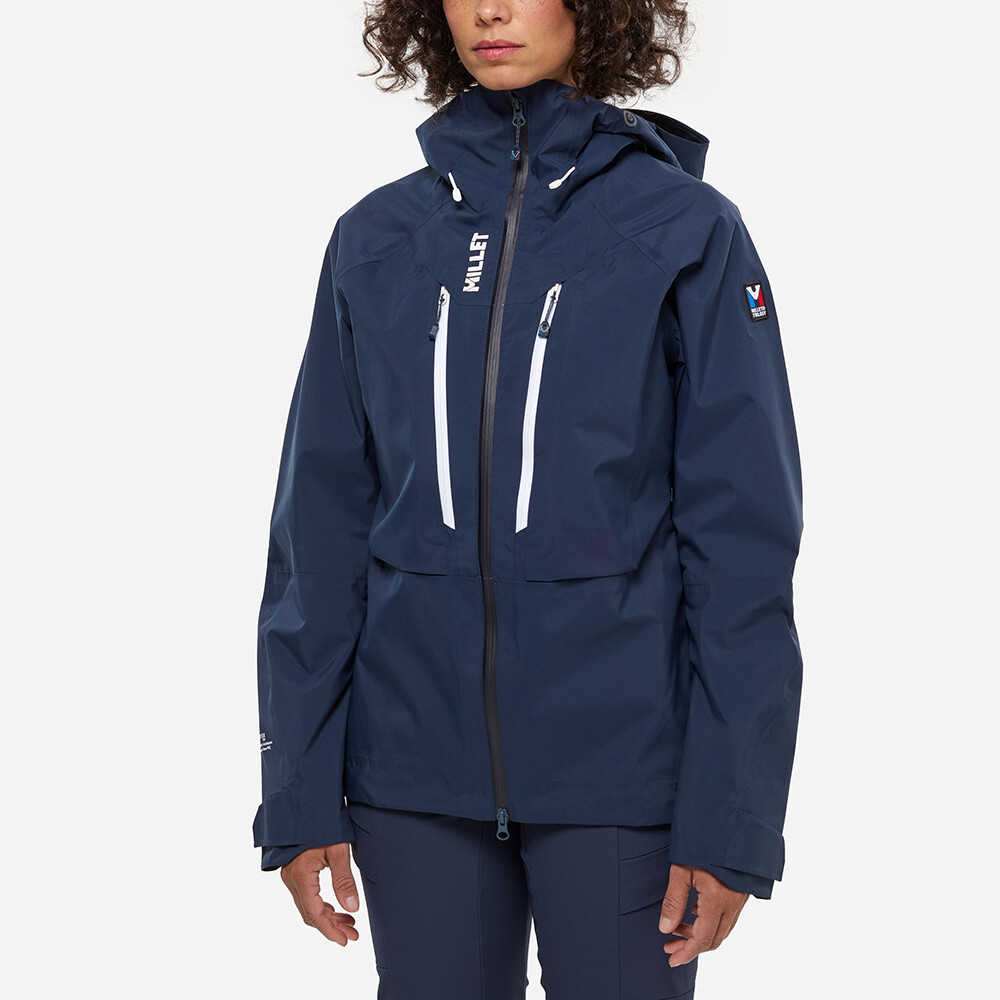 Jacheta alpină pentru femei TRILOGY ICON GORE-TEX PRO de la Millet oferă protecție superioară împotriva intemperiilor.