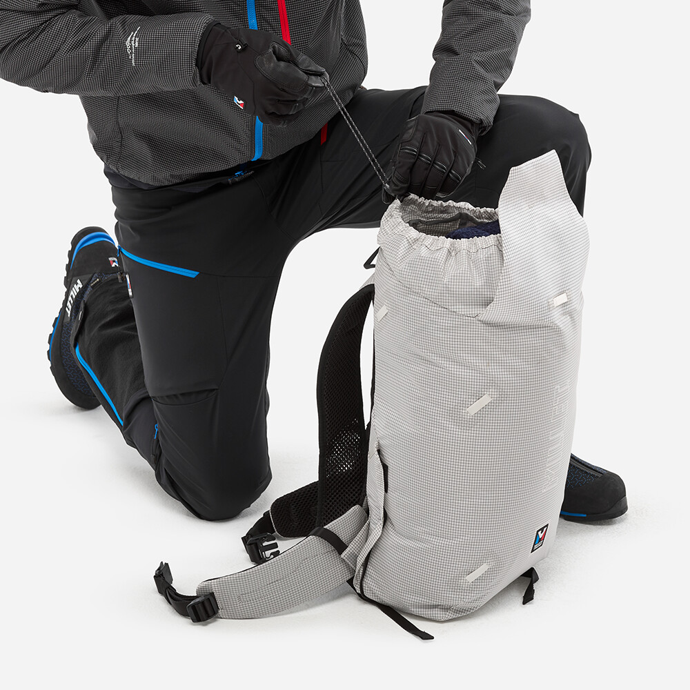 Rucsac foarte rezistent pentru alpiniști și alpiniști de la Millet. Cu secțiunea de atașare, îl puteți adapta cu ușurință la nevoile dvs. în funcție de aventura montană pe care urmează să o aveți. Rucsacul este fabricat din material ultralight, are un buzunar principal cu cordon și închidere cu cataramă și un fund întărit. Totul se manevrează perfect chiar și cu mănuși de iarnă. Dacă trebuie să vă luați și pioletul și coarda într-o drumeție, atașați un panou suplimentar în partea din față a rucsacului. Acesta are bucle pentru piolet, un cordon pentru coardă, poate fi atașat la un suport pentru cască și creează un buzunar pentru alte echipamente. În general, crește volumul rucsacului cu până la 5l. Puteți utiliza rucsacul în timpul iernii pentru drumeții pe ghețar, alpinism pe teren mixt, dar datorită compartimentului hidrovac este, de asemenea, potrivit pentru alpinism multi-pitch de vară, ascensiuni montane sau ferrata.