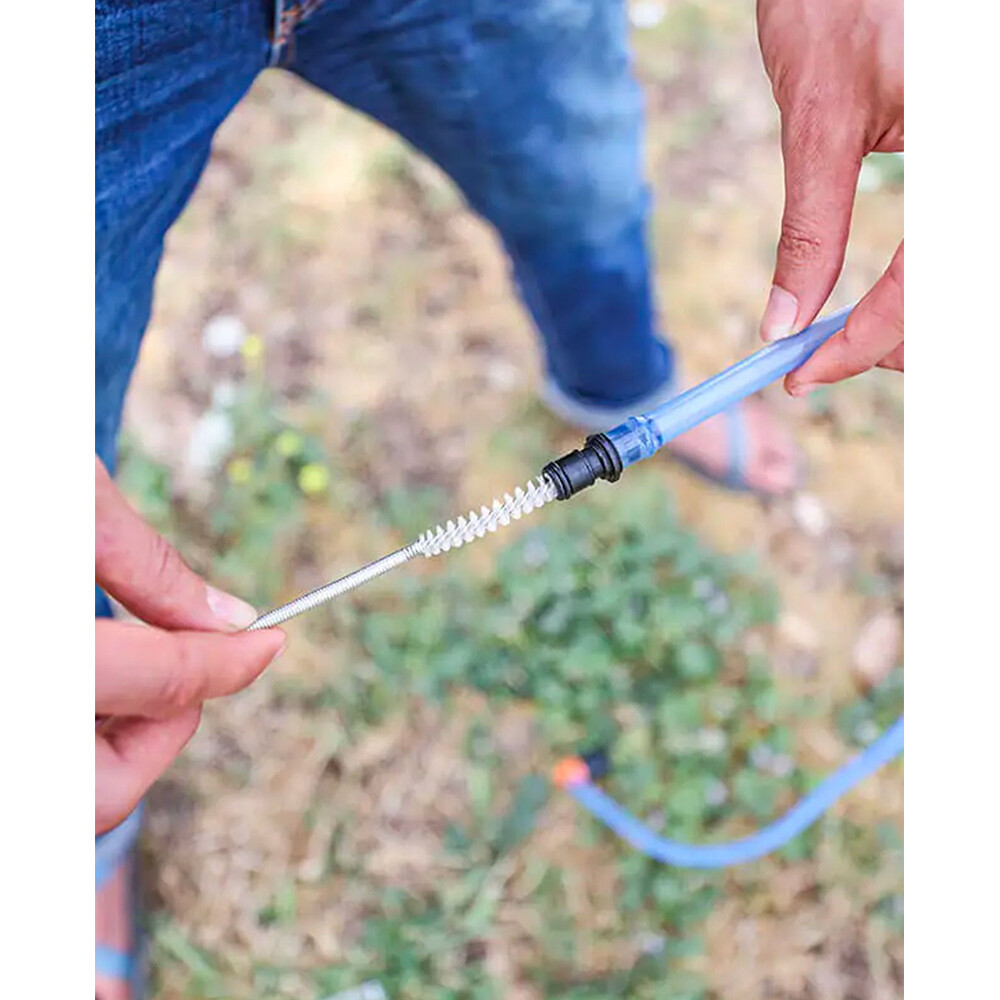 Un kit de la Source pentru curățarea eficientă a furtunului sacului de apă. Ideal atunci când utilizați băuturi îndulcite sau energizante. Peria fină de pe sârma din oțel inoxidabil lungă de 100 cm curăță furtunul de toate depunerile de murdărie și apă.