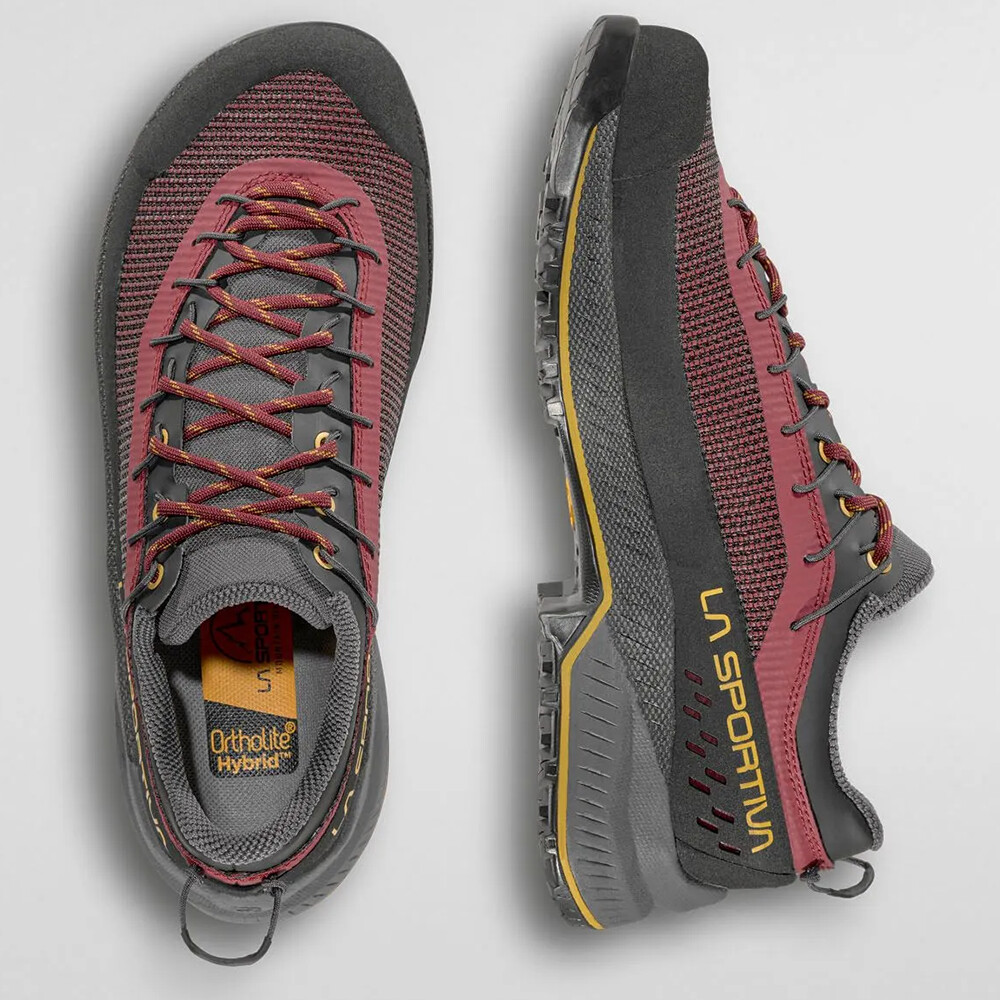 Pantofii de damă TX4 EVO ST de la La Sportiva sunt special concepuți pentru deplasarea în medii stâncoase, atunci când vă apropiați de traseele de escaladă sau pe Via Ferrata. Au o talpă Vibram® Megagrip cu aderență ridicată, cu o zonă de escaladă care oferă încredere pașilor atunci când vă deplasați pe teren stâncos și permite, de asemenea, o escaladă mai ușoară. Similar pantofilor de alpinism, șiretul este extins până la vârf. Acest lucru permite o strângere precisă și o potrivire perfectă la picior. Combinată cu o talpă cu sistemul patentat Impact Brake System™, oferă un control perfect al tracțiunii în timpul urcării și coborârii. Tupeul sintetic asigură o respirabilitate perfectă, făcând bocancii ideali pentru aventurile de cățărare de vară, cu un set de coardă sau ferrata.