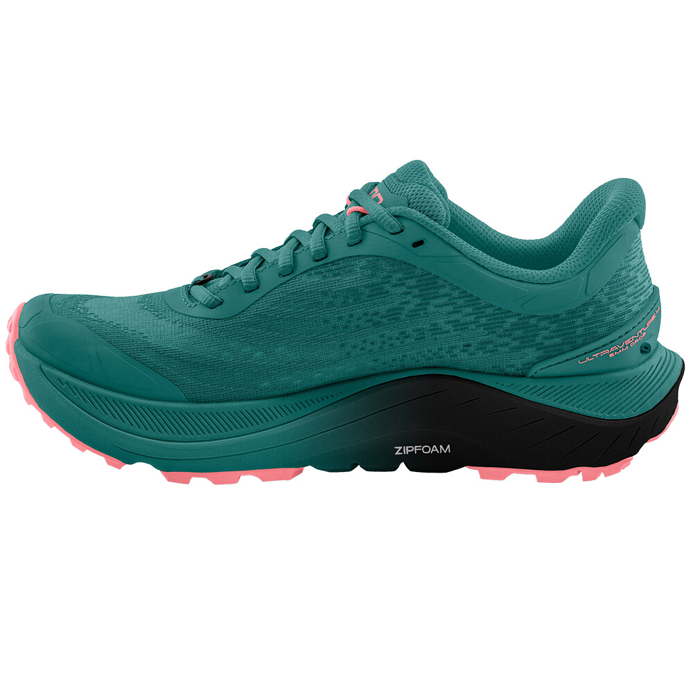 Pantoful de trail Ultraventure 4 Women oferă performanță maximă și confort pentru alergarea pe distanțe lungi. Tupeul său este fabricat din plasă reciclată cu panouri PU plasate strategic pentru a crește durabilitatea în zonele solicitate. Talpa intermediară ranforsată din spumă cu memorie ZipFoam™ va oferi cea mai bună amortizare, iar talpa personalizabilă Vibram® XS Trek EVO va asigura o tracțiune perfectă pe teren și pe drum.