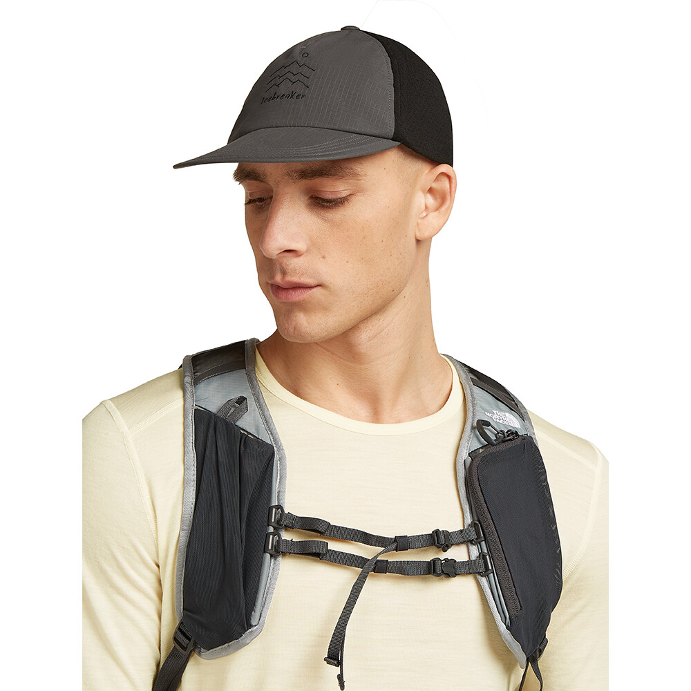 Pălăria unisex Shell™ Cotton Windbreaker Trucker de la Icebreaker vă va menține confortabil cu lână Merino și bumbac.