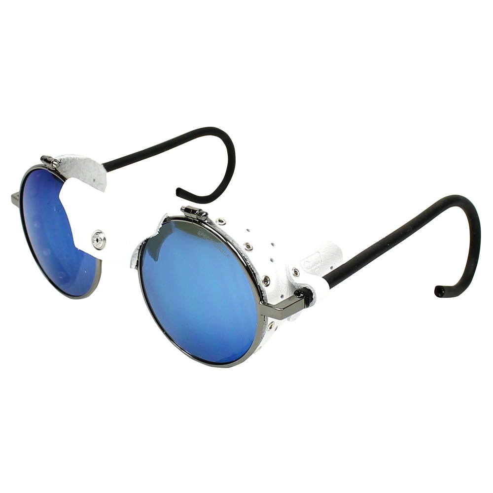 Ochelari de soare în stil glaciar cu lentile rotunde, părți elastice în spatele urechilor și părți din piele. Lentilele cu 4 filtre solare vă protejează ochii și lasă să intre 5% din lumina vizibilă. Ochii vă sunt protejați și din lateral.