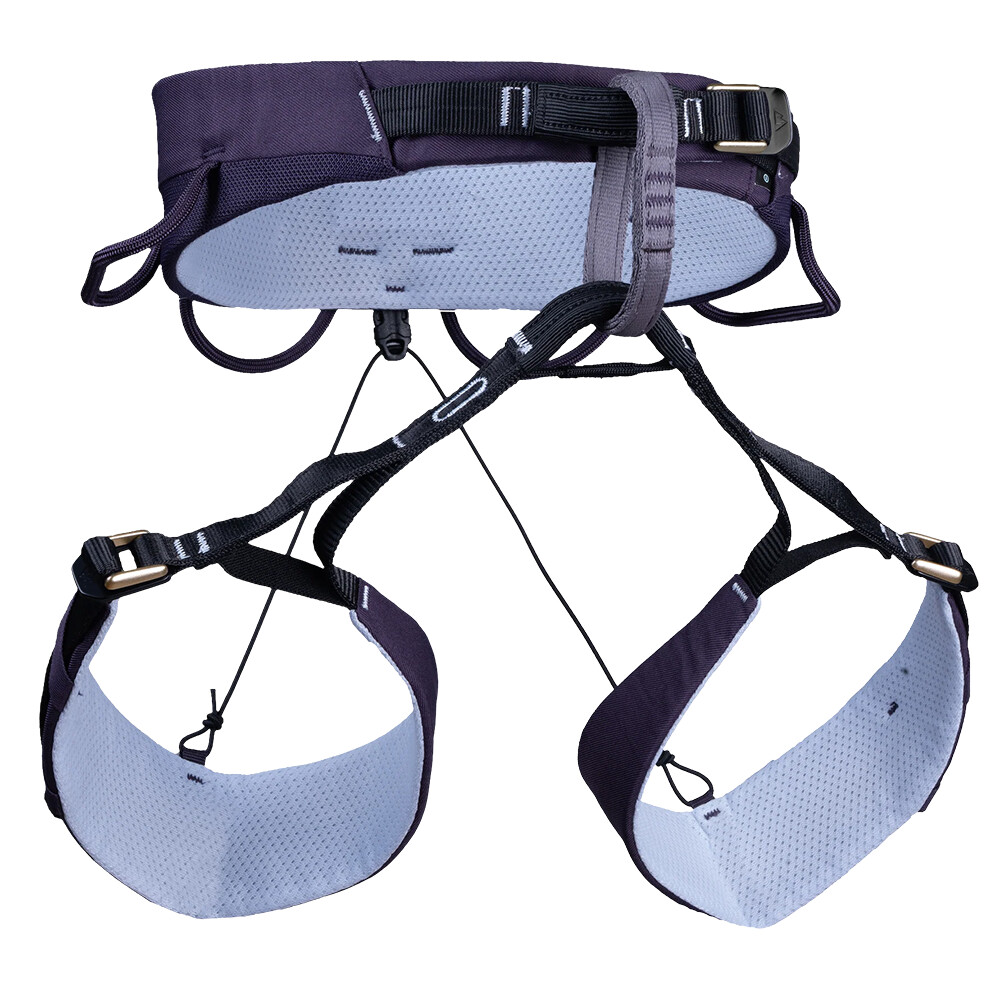 Harnașamentul Vista Adjust pentru femei, ușor și foarte confortabil, este potrivit pentru toate activitățile de alpinism. Harnașamentul îndeplinește principalele cerințe pentru un harnașament bun, o greutate relativ mică și confort sub sarcină în vis. Din punct de vedere tehnologic este format dintr-un sandwich din țesătură PES, curele ușoare și foarte rezistente din HTPE modern și un strat subțire de spumă EVA pentru căptușeală. Construcția este foarte plată, distribuind bine sarcina pe o suprafață mare. Acest lucru nu limitează mișcarea și o face confortabilă în orice moment. Există 4 bucle materiale clasice pentru carabiniere, centuri și alte articole de îmbrăcăminte. Cele din față sunt întărite cu plastic, iar cele două din spate au un design flexibil. O a cincea buclă mică este situată în mijlocul spatelui și este utilizată pentru a atașa echipamente mici sau pentru a atașa o frânghie de tractare.