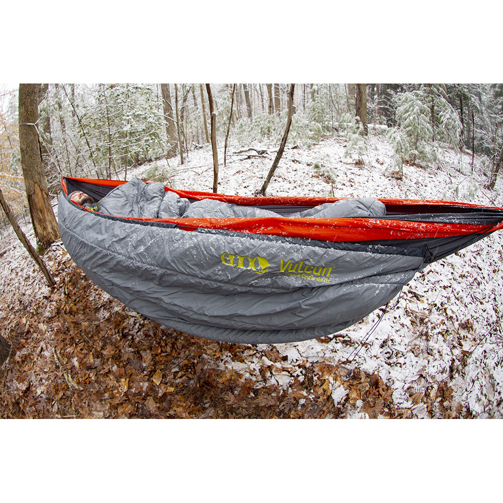 Izolația termică Vulcan UnderQuilt de la ENO este un"sac de dormit" pentru hamacul dumneavoastră. Este fabricat din două straturi de fibră caldă Primaloft® Gold care captează și reține căldura corporală. Acest lucru vă permite să dormiți confortabil în hamac chiar și în nopțile reci. În plus, are un finisaj hidrofug, astfel încât nu veți fi surprins de ploaie sau de prima ninsoare. Underquilt are, de asemenea, cleme complet reglabile, ceea ce îl face compatibil cu orice hamac ENO (cu excepția modelului SkyLoft).