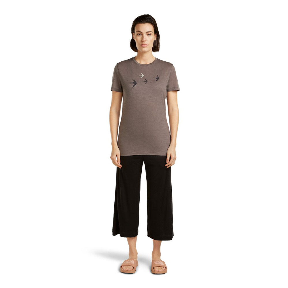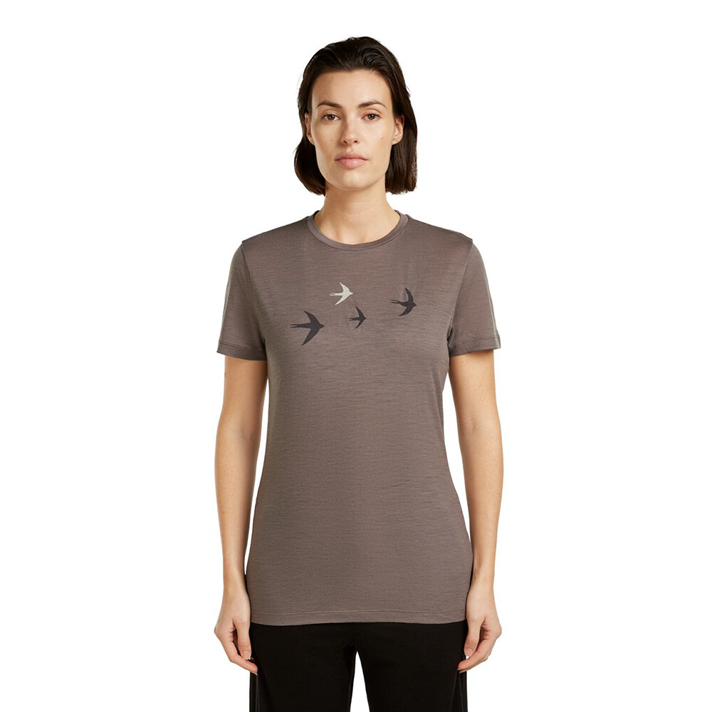 Tricoul pentru femei Merino 150 Tech Lite SS Tee Bird Transit de la Icebreaker din lână merino fină este o piesă versatilă potrivită pentru călătorii, drumeții și purtarea de zi cu zi.