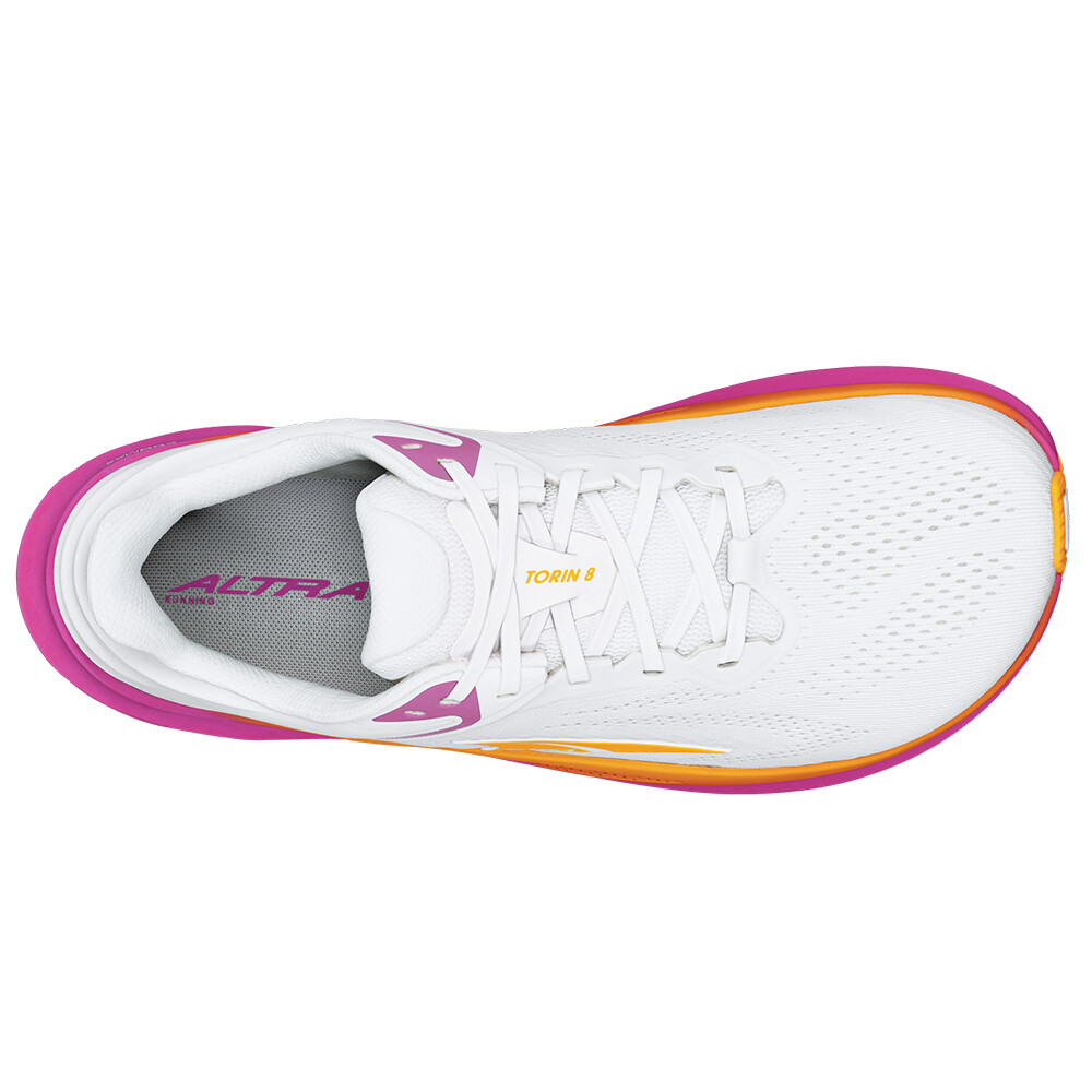 Altra Torin 8 Women este un pantof de alergare pentru femei ușor, confortabil și versatil, care va fi apreciat atât de începători, cât și de alergătorii experimentați. Sunt ideali pentru asfalt, piste de biciclete și drumuri pietruite, iar datorită nivelului ridicat de confort, pot fi folosiți și pentru plimbare sau purtați toată ziua. Nu uitați de șosete de calitate pentru o alergare confortabilă.