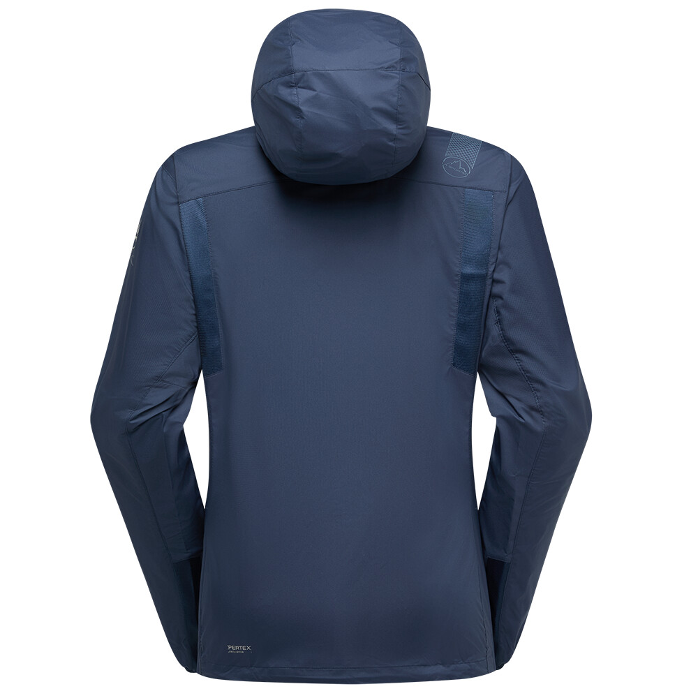 Jacheta de alergare pentru femei de la La Sportiva vă va proteja pe vreme rea datorită materialului său rezistent la vânt și la apă. Materialul asigură, de asemenea, o respirabilitate ridicată.