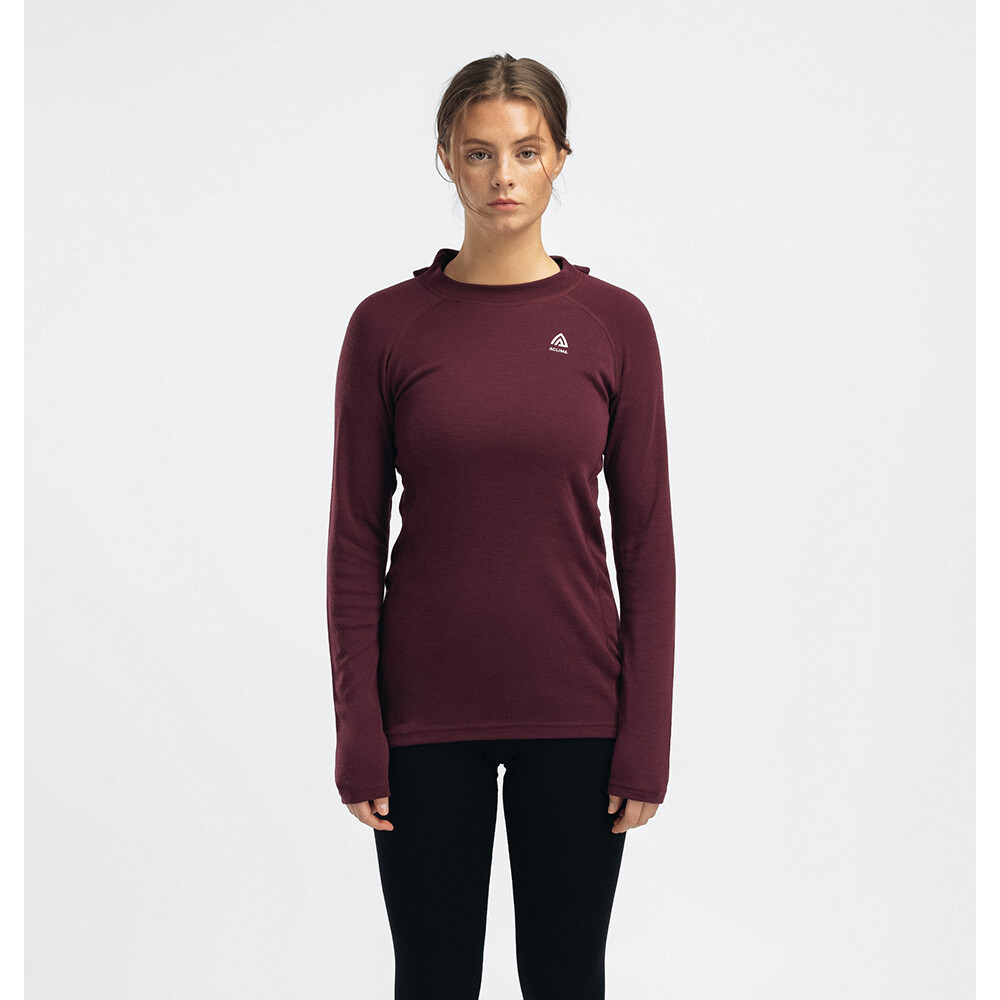 Strat funcțional pentru femei WarmWool Hoodsweater V2 de la Aclima pentru activități montane în care vremea se poate schimba de la un minut la altul.