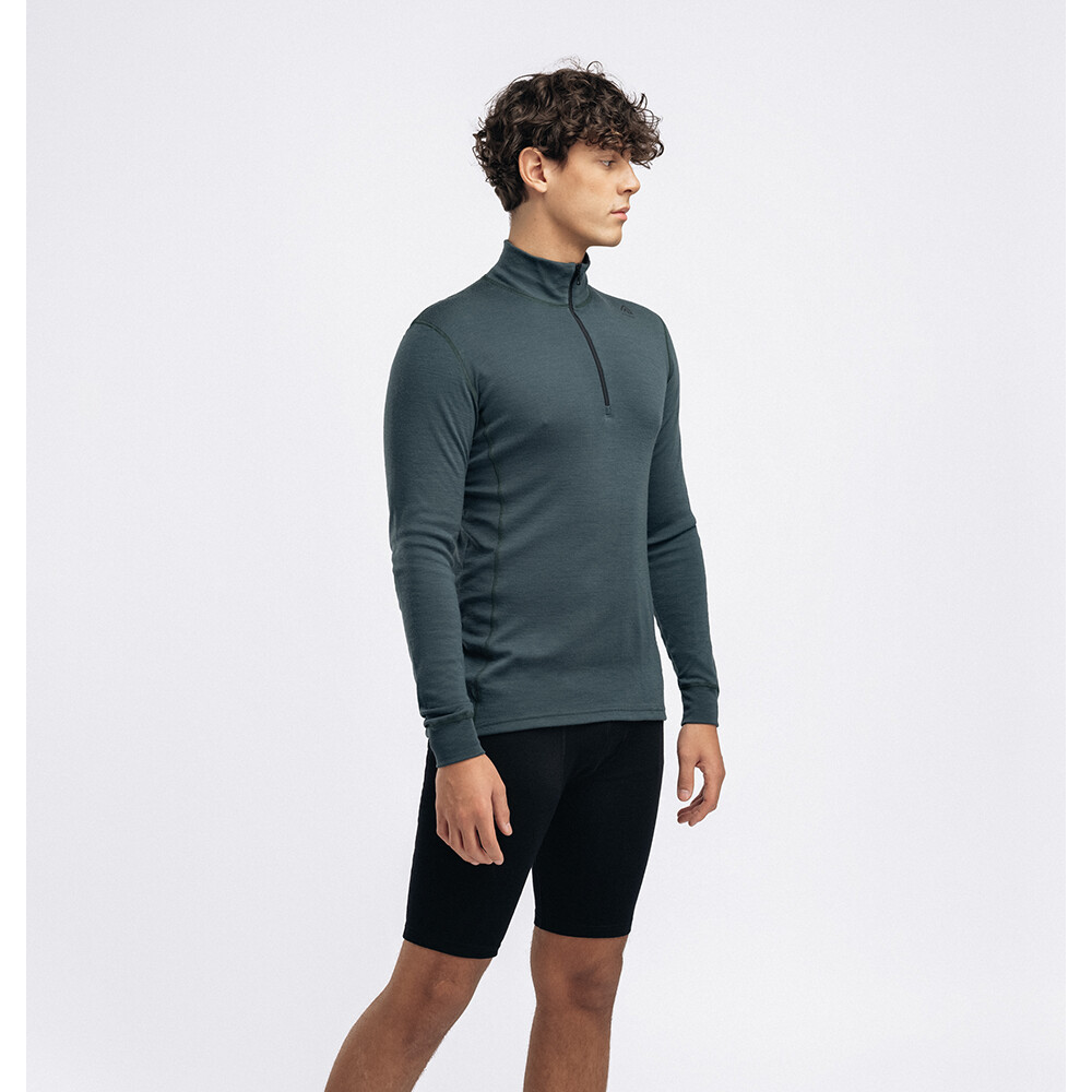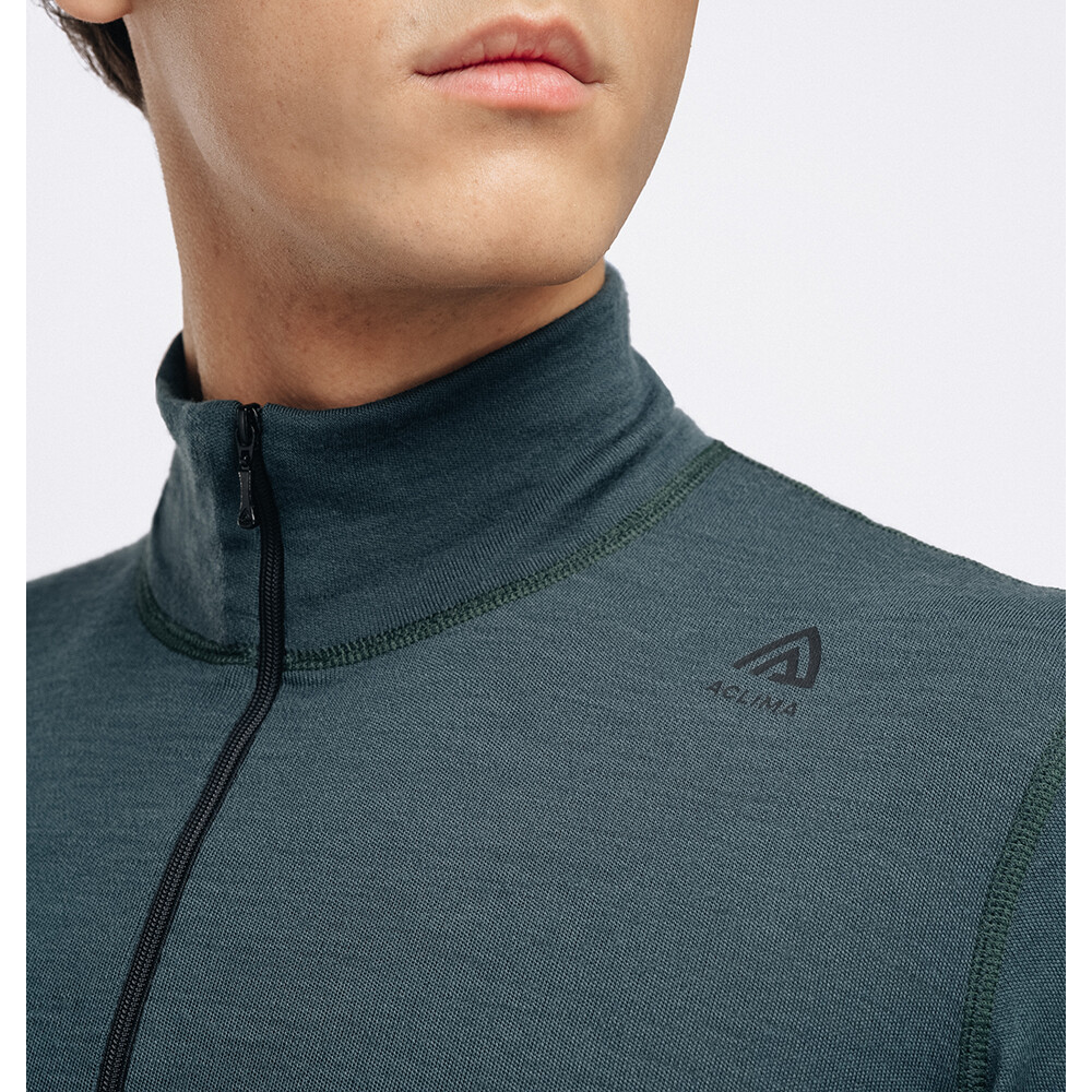 Tricou funcțional WarmWool Mock Neck pentru bărbați de la Aclima. WarmWool este una dintre cele mai populare serii. Tricoul cu guler stand-up ajută la menținerea căldurii în jurul gâtului.