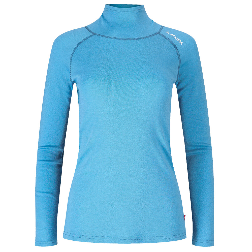Tricou funcțional WarmWool Roll Neck pentru femei de la Aclima. WarmWool este una dintre cele mai populare serii. Tricoul cu gât rotund păstrează căldura în jurul gâtului.