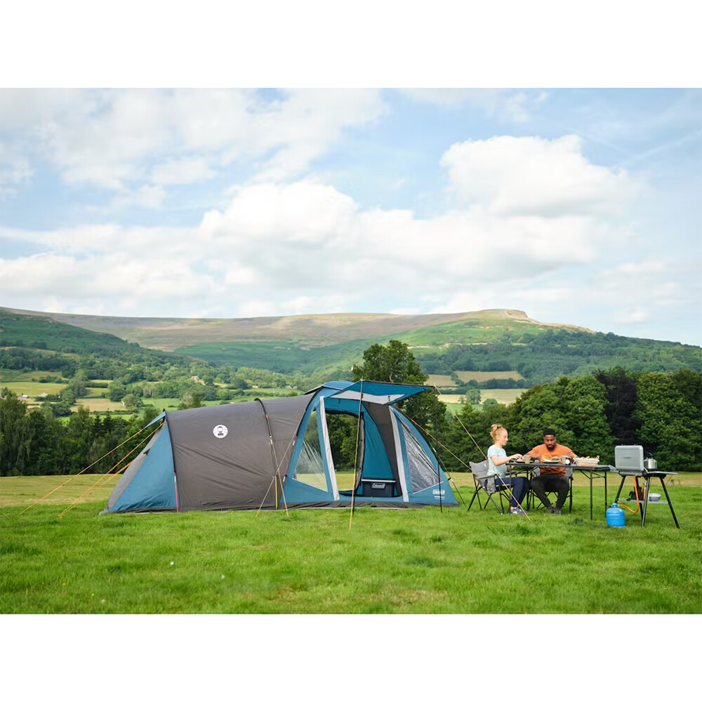 Waterfall 5 de la Coleman este un cort potrivit pentru camping pentru o familie sau un grup de prieteni. Forma sa combină construcția de tip tunel și dom. Acesta oferă o anticameră spațioasă cu o înălțime de 165 cm și un dormitor în care pot dormi până la cinci persoane. Anticamera are două ferestre mari din PVC care lasă să intre multă lumină și au și opțiunea de blackout. Ușa cortului poate fi folosită ca o copertină cu doi stâlpi de oțel pentru a oferi o zonă umbrită în fața cortului, ideală pentru a plasa o masă și scaune de camping . Interesant este că există, de asemenea, găuri pentru tragerea cablurilor electrice în afara intrării și buzunare mari de depozitare în interiorul cortului pentru depozitarea obiectelor mici, cum ar fi o lampă, articole de toaletă și alte echipamente.