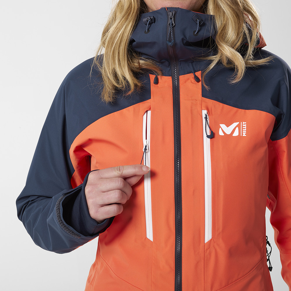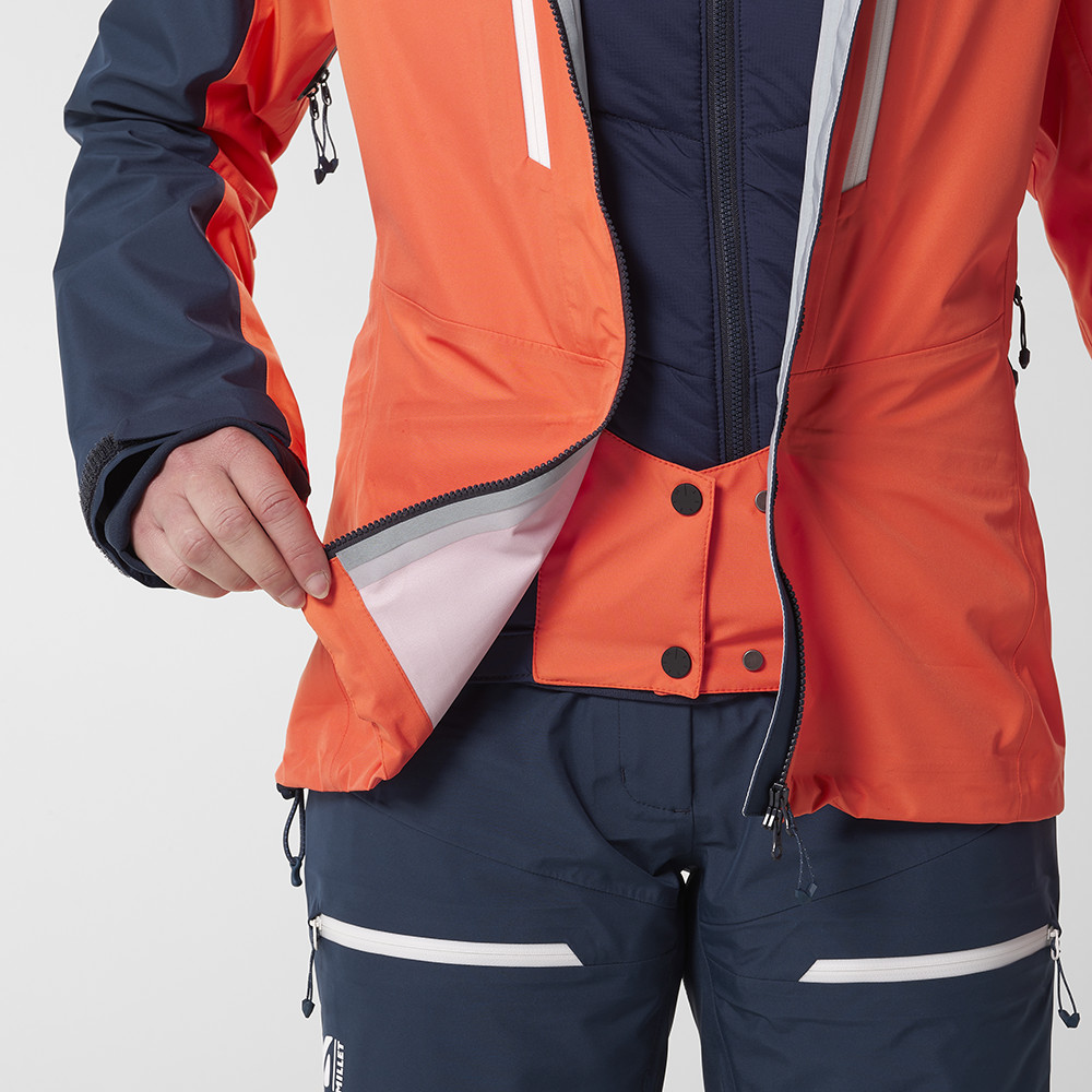 Materialul în 3 straturi cu membrana DRYEDGE™ High Breath este un material impermeabil foarte respirabil. Nu lasă apa sau vântul să ajungă la corp, singurul lucru care se evaporă afară este umezeala generată în timpul efortului. Pentru o mai bună ventilație, jacheta are o deschidere cu fermoar în axilă. Desigur, o glugă de protecție compatibilă cu casca și sistemul RECCO sunt părți indispensabile ale echipamentului fiecărui schior.