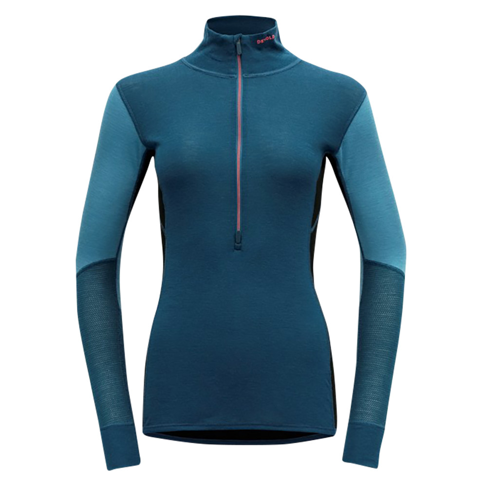 Tricou pentru femei Wool Mesh Zip Neck de la compania norvegiană Devold pentru activități de intensitate mai mare. Fabricat din 100% lână Merino.