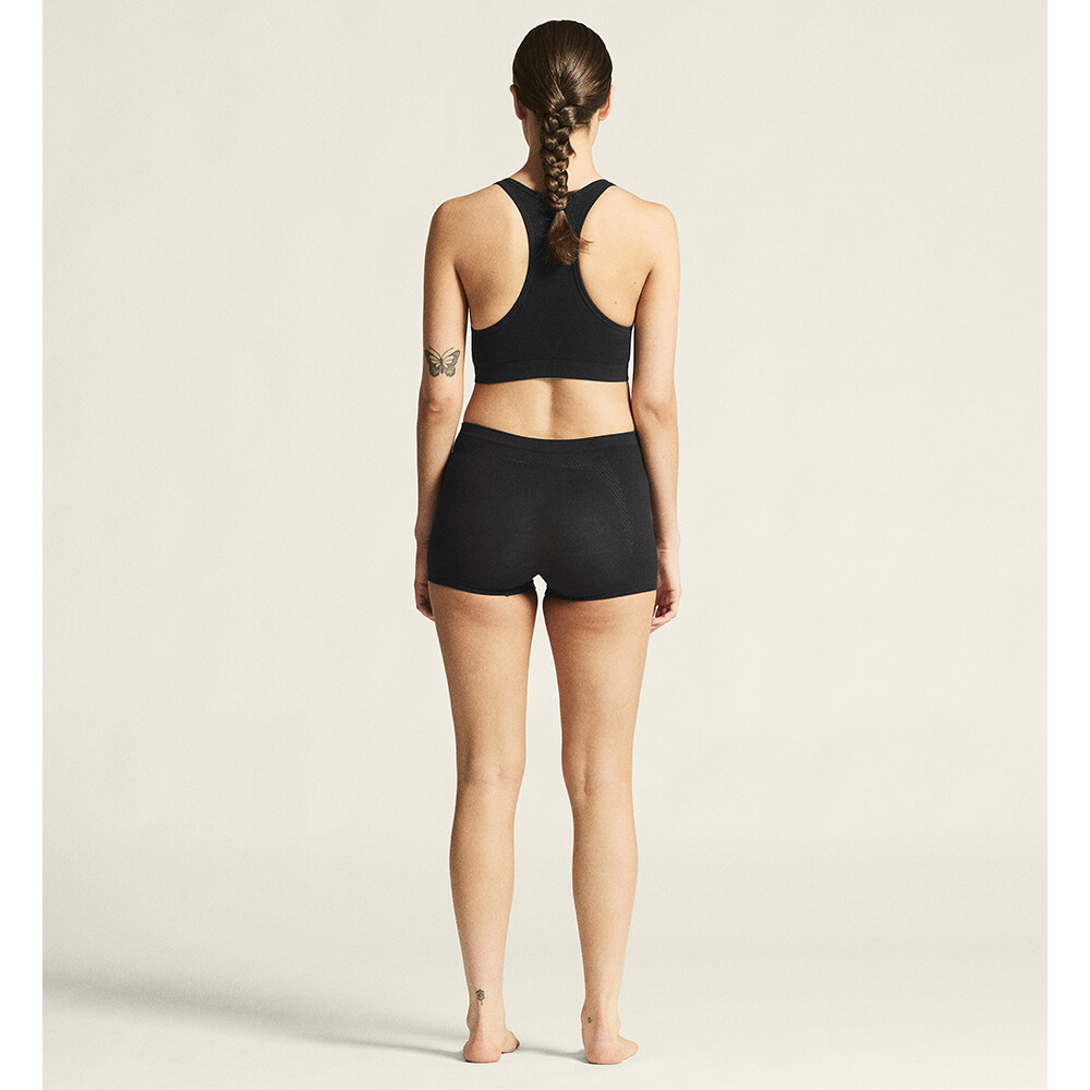 Sutien sport pentru femei Sutien Wool Seamless de la compania suedeză Craft cu lână Merino potrivit pentru purtare pe tot parcursul anului. Este ușor, respirabil și oferă confortul necesar.