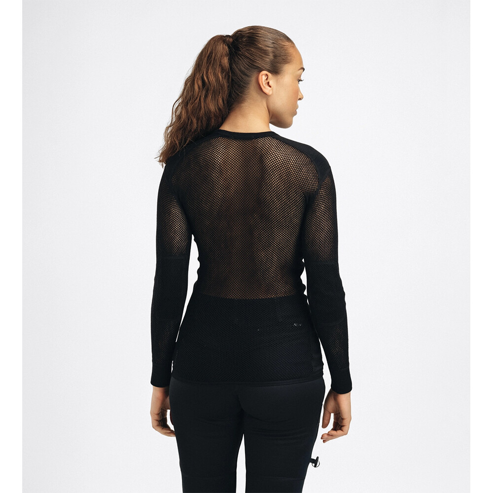 Cămașa WoolNet Crewneck Women's Round Neck Long Sleeve Mesh Shirt are întărituri la nivelul coatelor și tricot cu nervuri la nivelul umerilor pentru a proteja împotriva disconfortului provocat de curelele de umăr ale rucsacului și împotriva uzurii generale. Cămașa este potrivită pentru toate activitățile cu activitate intensă, de la drumeții alpine iarna, drumeții montane lungi, drumeții și expediții dificile și mai puțin solicitante până la vânătoare și pescuit.