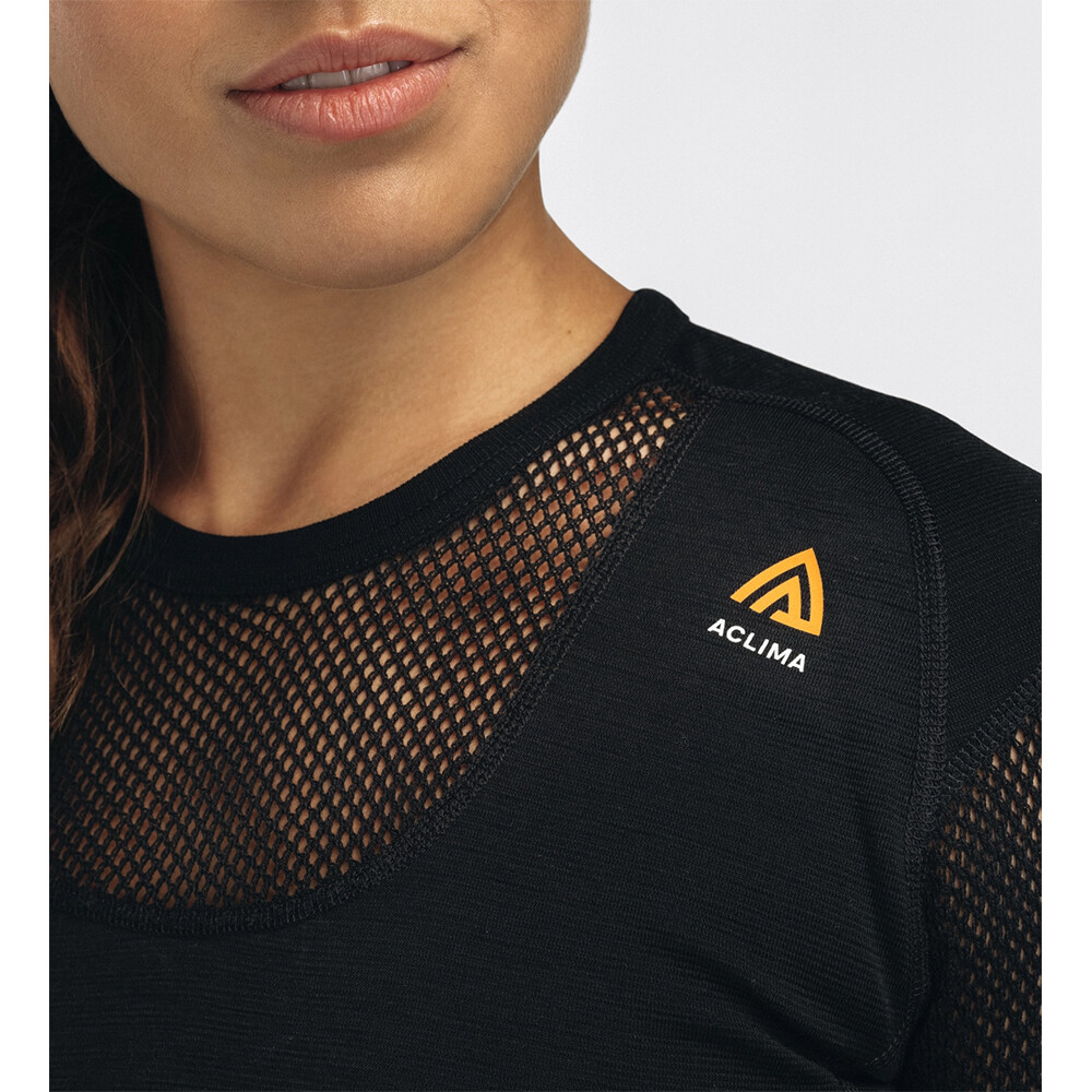 Tee Logo funcțional LightWool pentru femei de la compania norvegiană Aclima din lână moale și ușoară, conceput pentru activități în lunile mai calde.