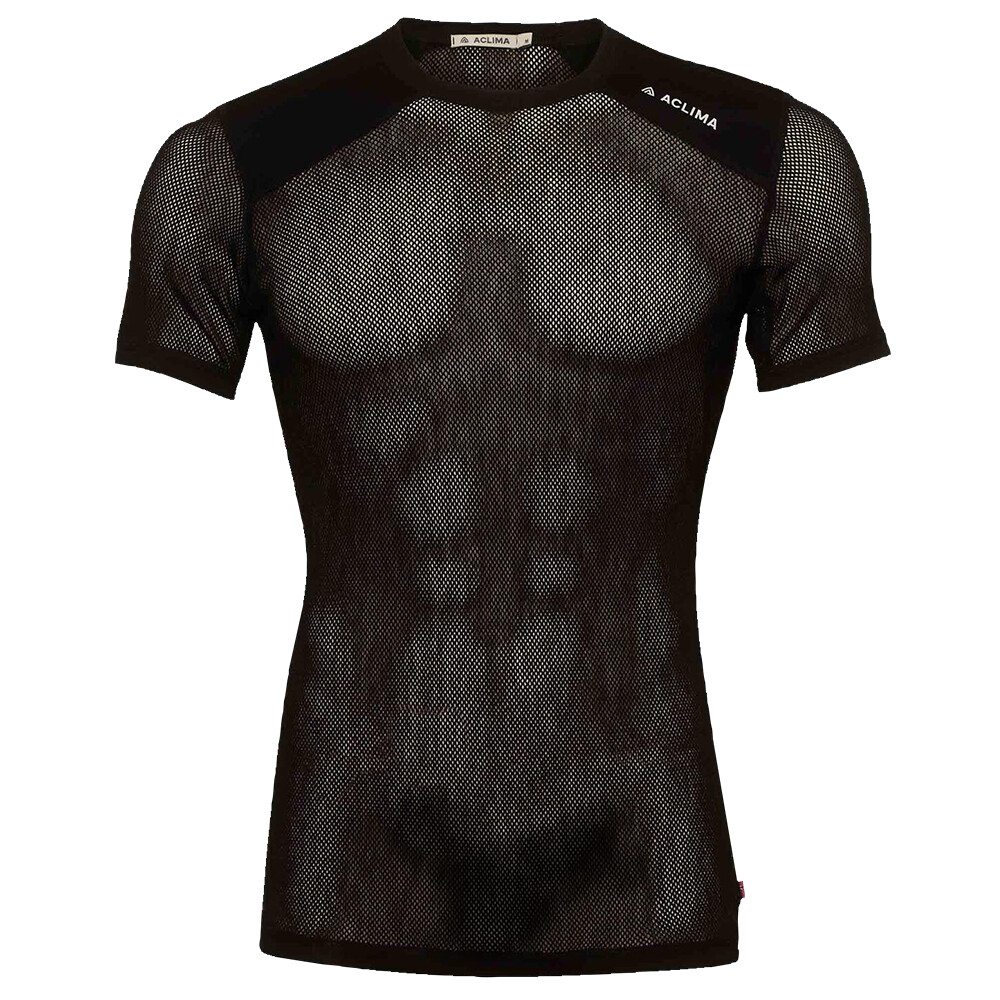 Tricou bărbătesc din plasă în țesătura ultra-ușoară WoolNet Light de la brandul norvegian Aclima, conceput pentru activități de intensitate ridicată, cum ar fi alergarea, drumețiile sau schiul de fond.