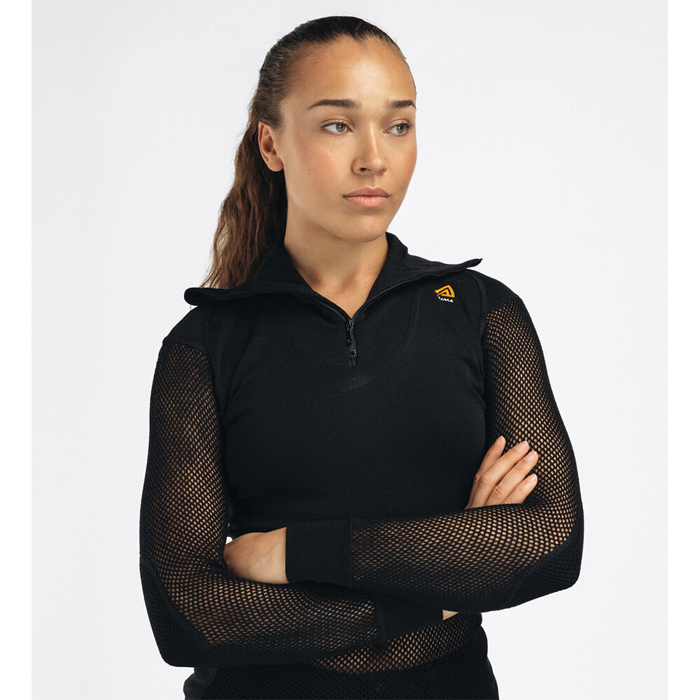 Puloverul pentru femei WoolNet Polo W/Zip de la Aclima este o piesă ușoară din plasă care lucrează 100% cu corpul tău. Fabricat din plasa originală de lână WoolNet, acest tricou captează căldura în exces, eliberând-o în același timp către alte straturi. Acest lucru face din această piesă din lână alegerea perfectă pentru ventilație maximă și reglarea temperaturii în timpul activităților sportive riguroase. De ce plasă, totuși? Pentru că elimină umezeala cu brio, se usucă extrem de repede și, în același timp, creează buzunare de aer care izolează foarte bine, fără a se simți lipicios sau prea cald. Astfel, prin tricotarea fibrei de lână într-o plasă, obținem beneficiile unice ale confortului suprem.