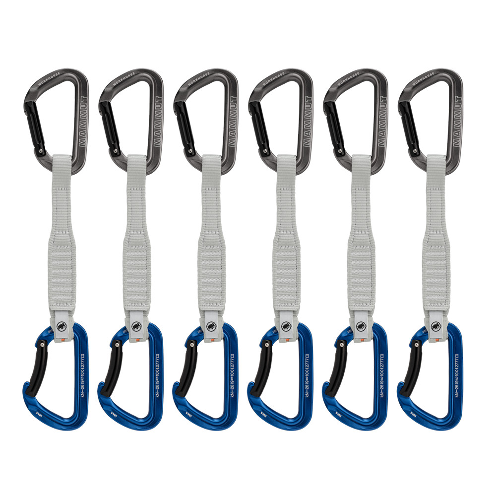 Set de șase prese clasice Mammut. Ambele carabiniere au încuietori complete și încuietori cu cheie, unde veți aprecia clicul lor neted în belay și coardă.