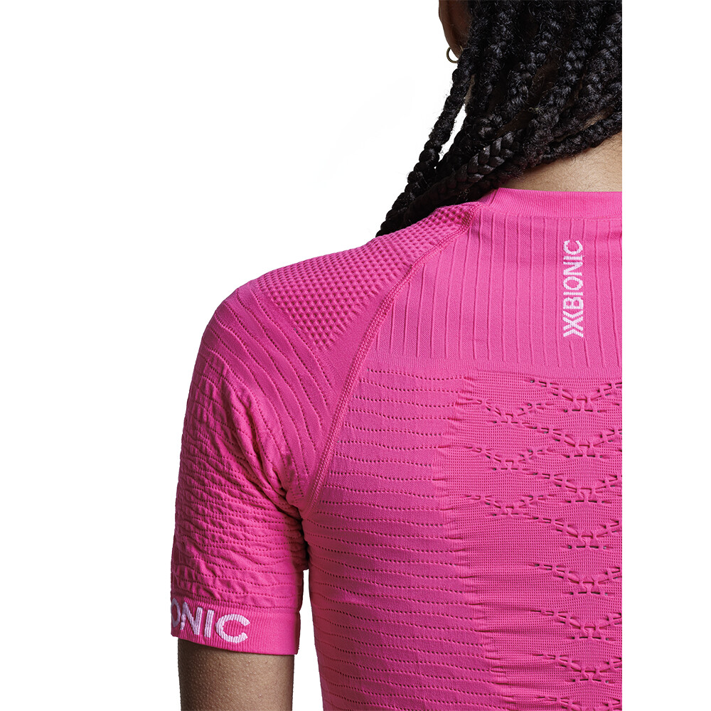 Un tricou de alergare elegant pentru femei de la X-Bionic care garantează confort și performanță la fiecare pas - de la prima mișcare până la linia de sosire.