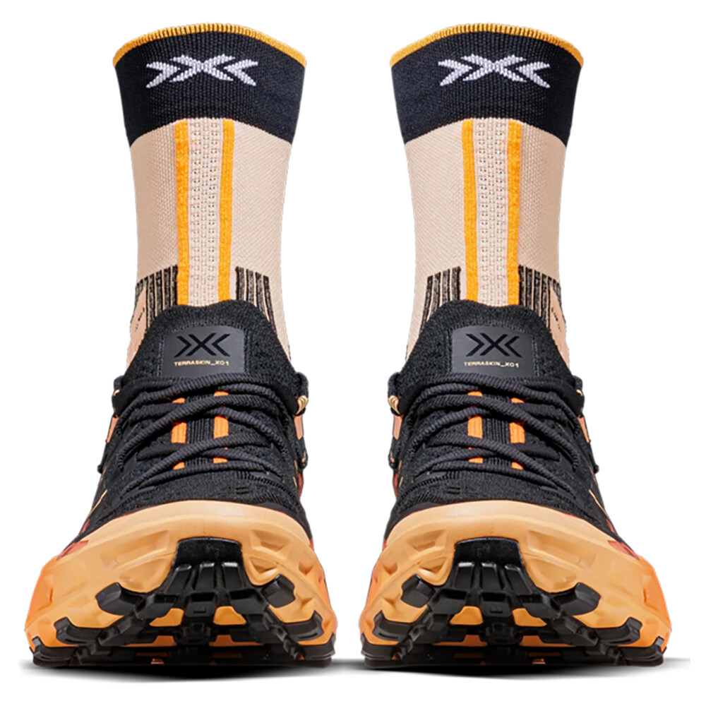 Conceptul "From Skin to Ground" se bazează pe ideea că nici cei mai buni pantofi de alergare nu pot funcționa bine fără șosete bine făcute. Acesta este motivul pentru care pantofii Terraskin X01 sunt vânduți cu șosete dezvoltate de X-Bionic. Piciorul tău se va integra perfect în șosetă și pantof, astfel încât să te poți concentra pe mișcare și să te bucuri din plin de mișcare.