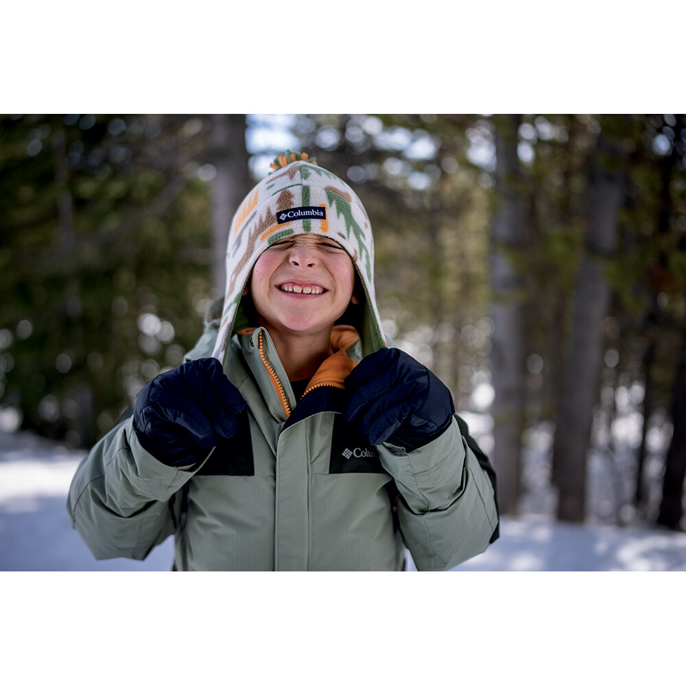 Fularul pentru urechi unic Youth Frosty Trail II de la Columbia, care protejează perfect nu numai capul, ci și urechile. Potrivirea conturată ține și acoperă perfect urechile. Are un design vesel și, mai presus de toate, o căptușeală moale din fleece.