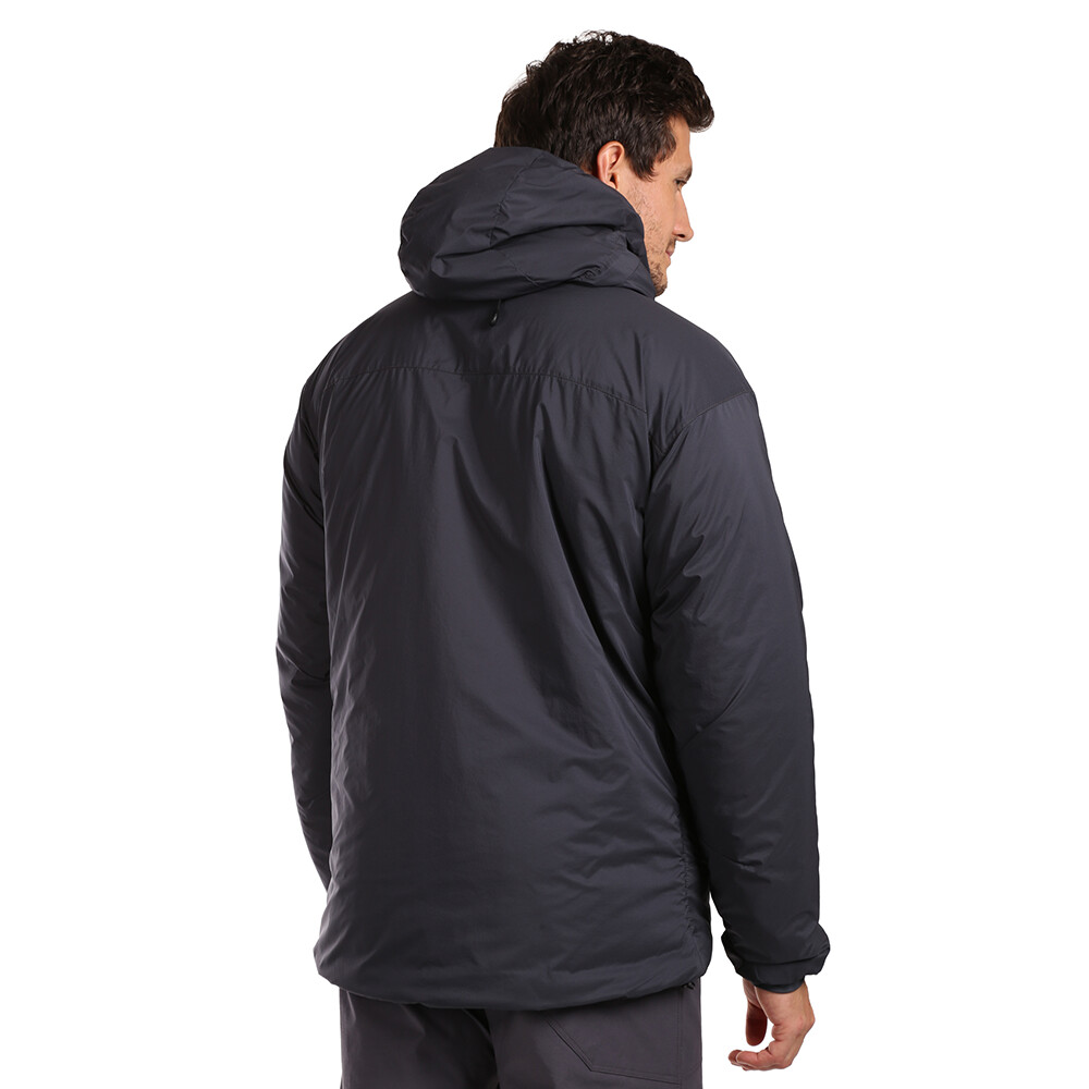 Jachetă izolată pentru bărbați cu glugă de la Arc´teryx. Umplutura sintetică caldă este completată de materialul fleece elastic pe părțile laterale pentru a promova o respirabilitate mai bună.